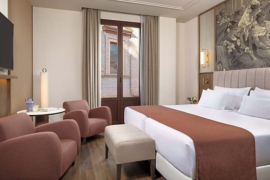 Some of these rooms are interior facing, while others have a private interior terrace. Some rooms offer views of San Anton Church, and some of Recogidas Street and Puerta Real with the Sierra Nevada Mountains in the background.