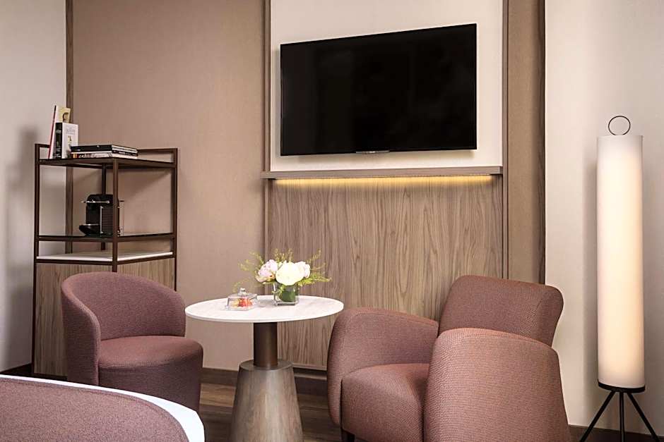 These stylish, modern rooms feature a 48-inch TV, a kettle, mini-bar, safe and Nespresso coffee machine. The beds are fitted with specially-designed mattresses.